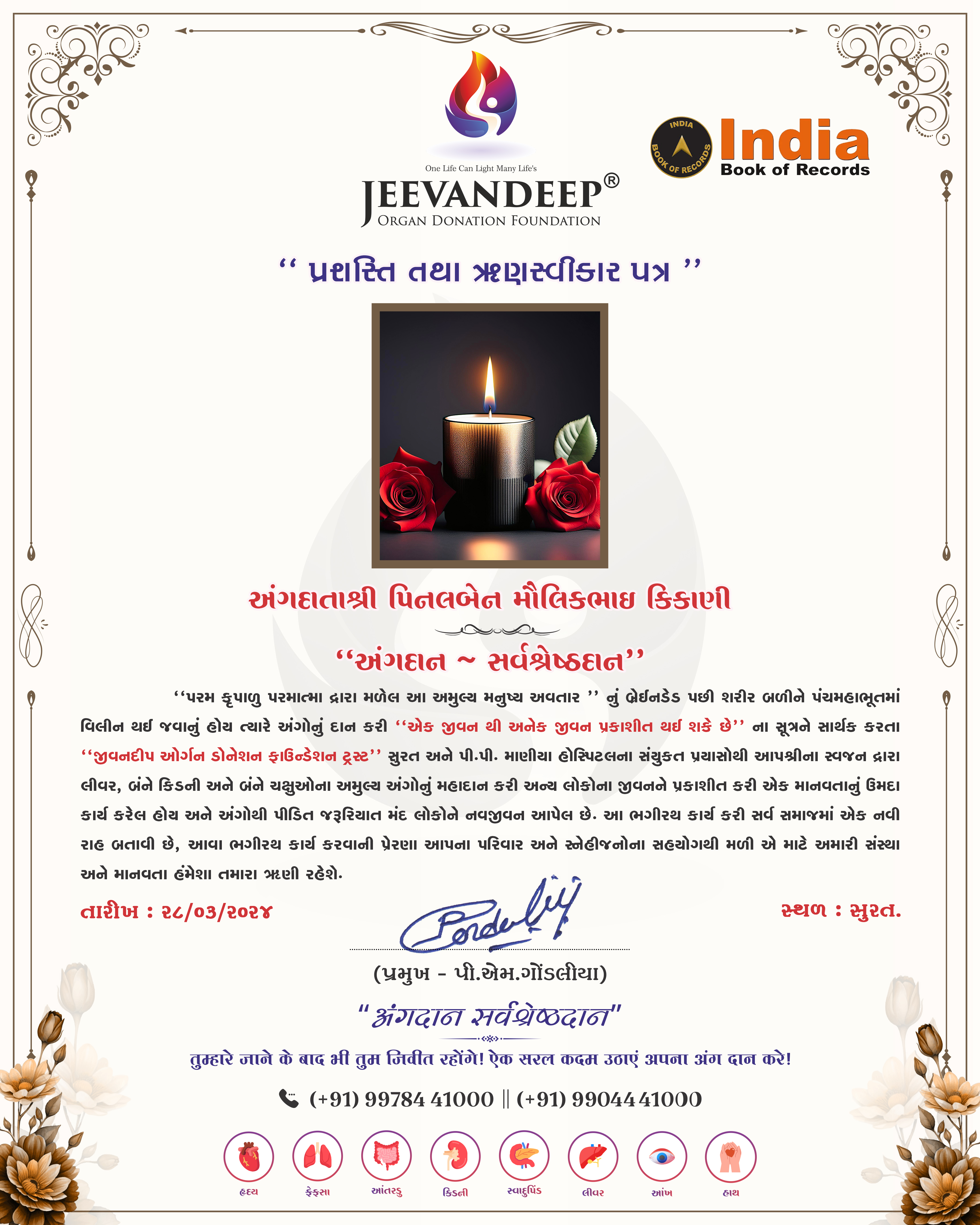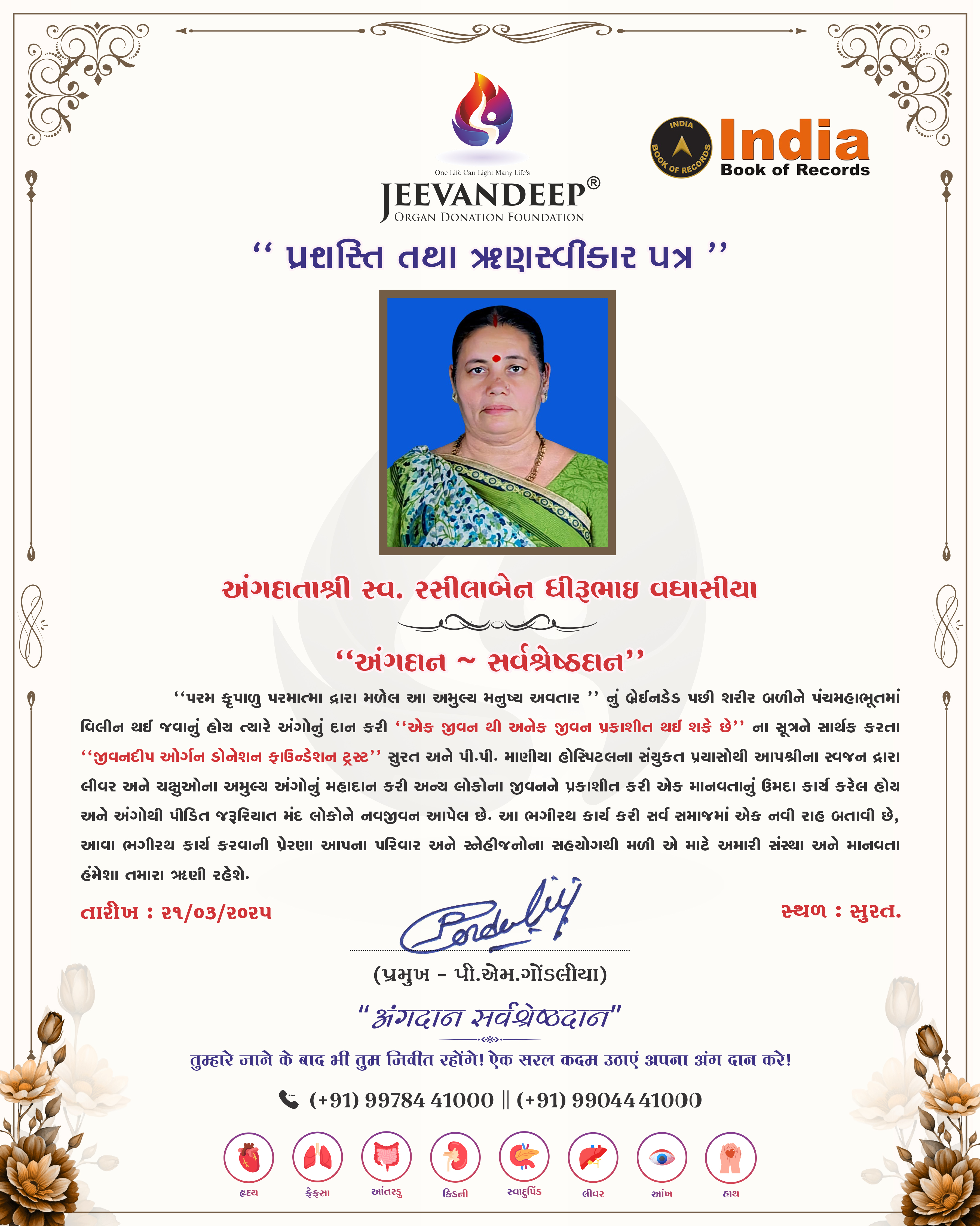 Jeevandeep Foundation is dedicated to promoting organ donation awareness and supporting families in need. Together, we can save lives.
