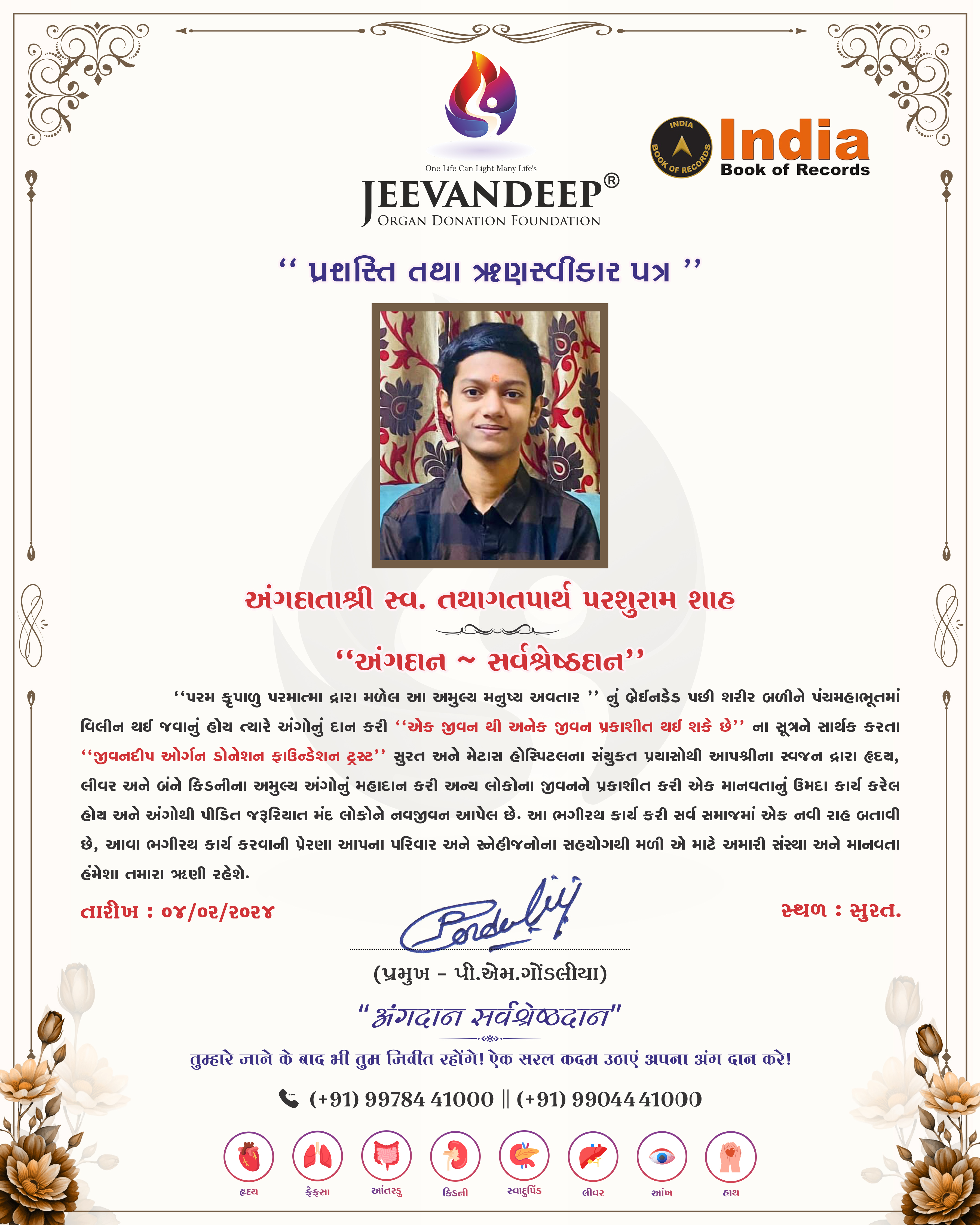 Jeevandeep Foundation is dedicated to promoting organ donation awareness and supporting families in need. Together, we can save lives.
